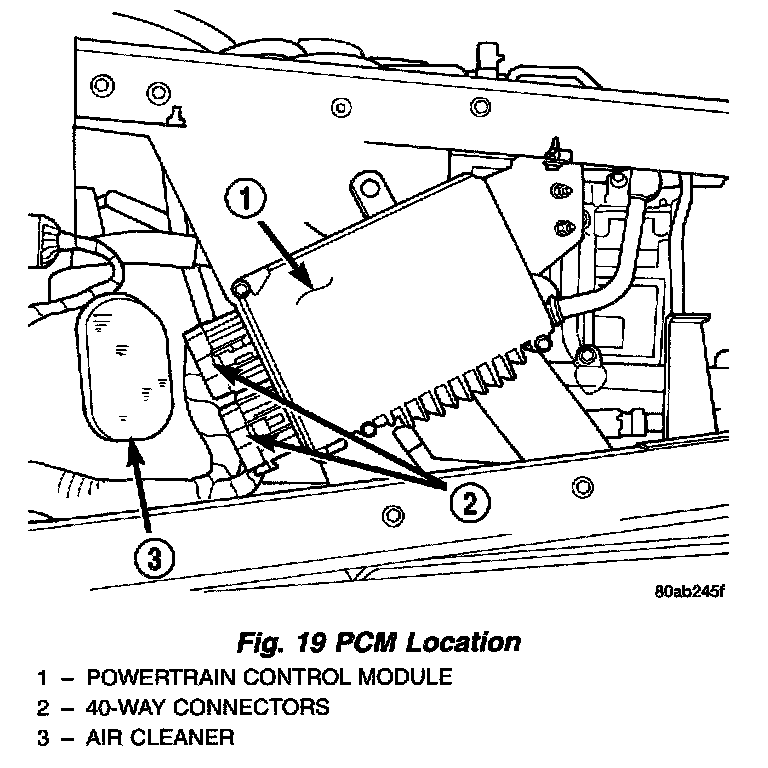 The PCM engine control strategy prevents reduced idle speeds until after the engine operates for 320 km (200 miles). If the PCM is replaced after 320 km (200 miles) of usage, update the mileage and vehicle identification number (VIN) in the new PCM. Use the DRB scan tool to change the mileage and VIN in the PCM. If this step is not done a diagnostic trouble code (DTC) may be set. Refer to the appropriate Powertrain Diagnostic and the DRB scan tool.REMOVAL