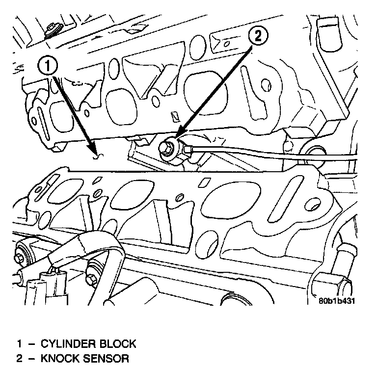 CAUTION: Over or under tightening affects knock sensor performance, possibly causing improper spark control.
