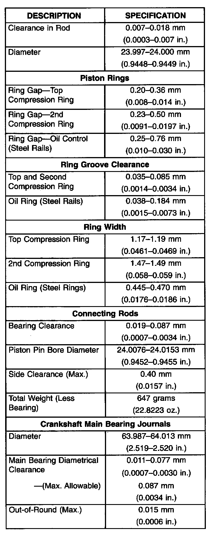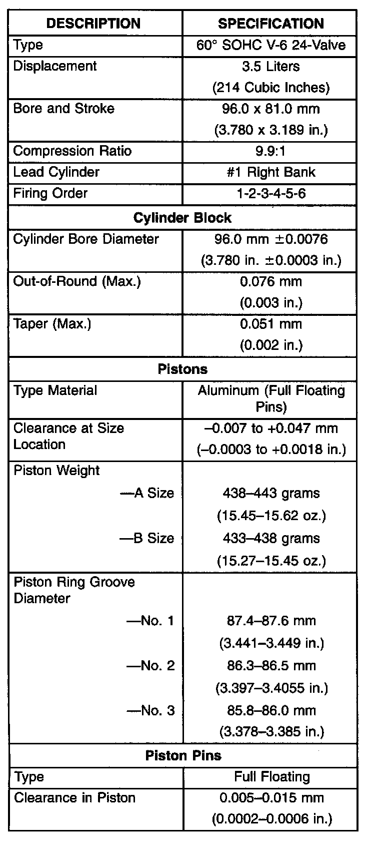 Engine Specifications