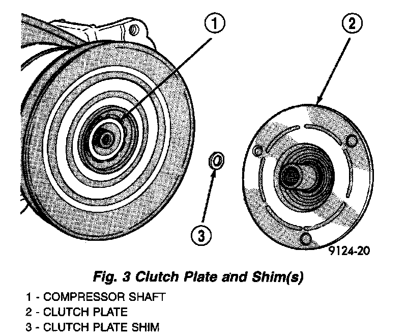 Fig. 2 Compressor Shaft Bolt and Clutch Plate: