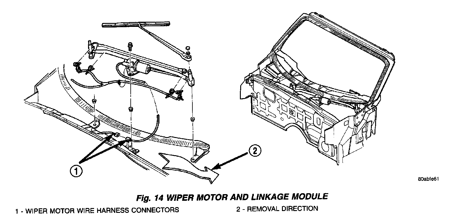 3. Remove wiper arms and blades, disconnect hoses from in-line connectors. Be sure that the in-line connector is saved.