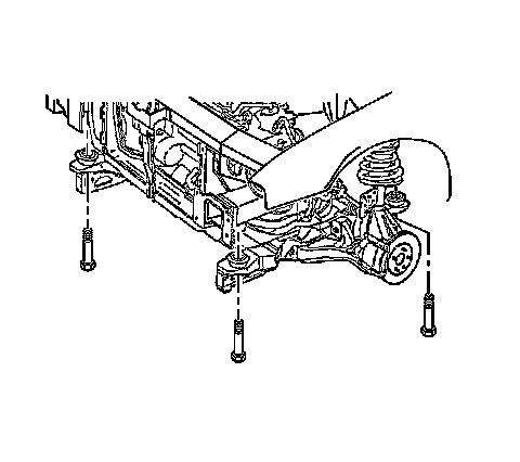 1. Remove the frame insulators from the frame. Refer to Drivetrain and Front Suspension Frame Front Insulator Replacement (Drivetrain and Front Suspension Frame Front Insulator Replacement).