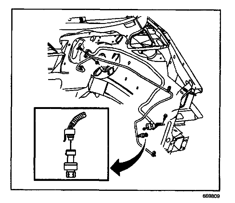 5. Remove the A/C refrigerant pressure sensor from the evaporator inlet tube.