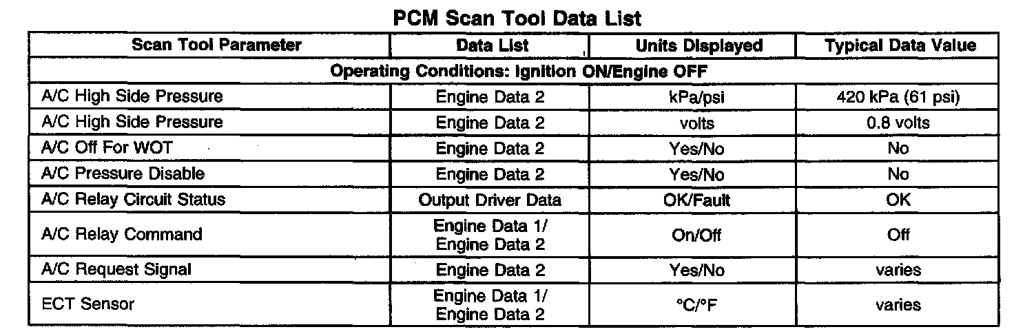 Scan Tool Data List - Powertrain Control Module (PCM)