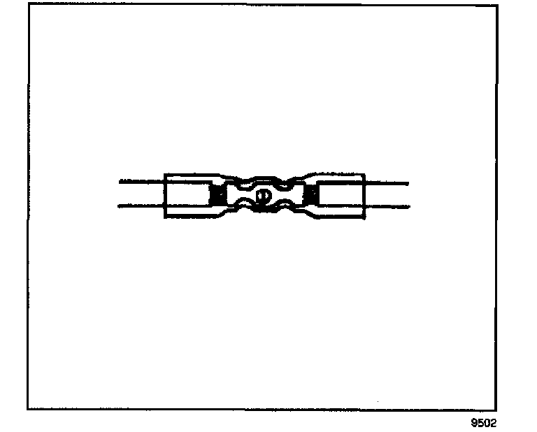 6. Place the splice sleeve in the nest. Ensure that the crimp falls midway between the end of the barrel and the stop. The sleeve has a stop (3) in the middle of the barrel (2) in order to prevent the wire (1) from going further. Close the hand crimper handles slightly in order to firmly hold the splice sleeve in the proper nest.