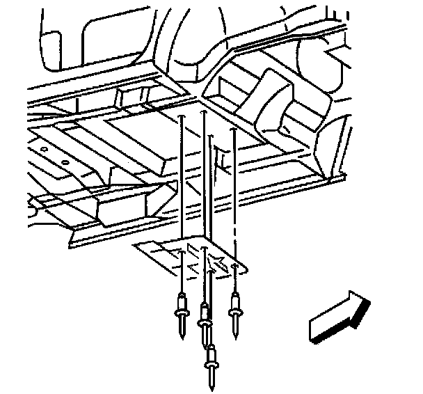 2. Install the catalytic converter heat shield to the vehicle with new rivets.