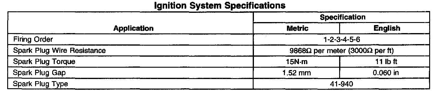 Ignition System Specifications: