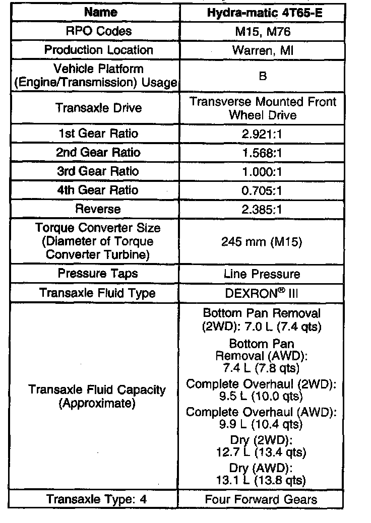 Transmission General Specifications