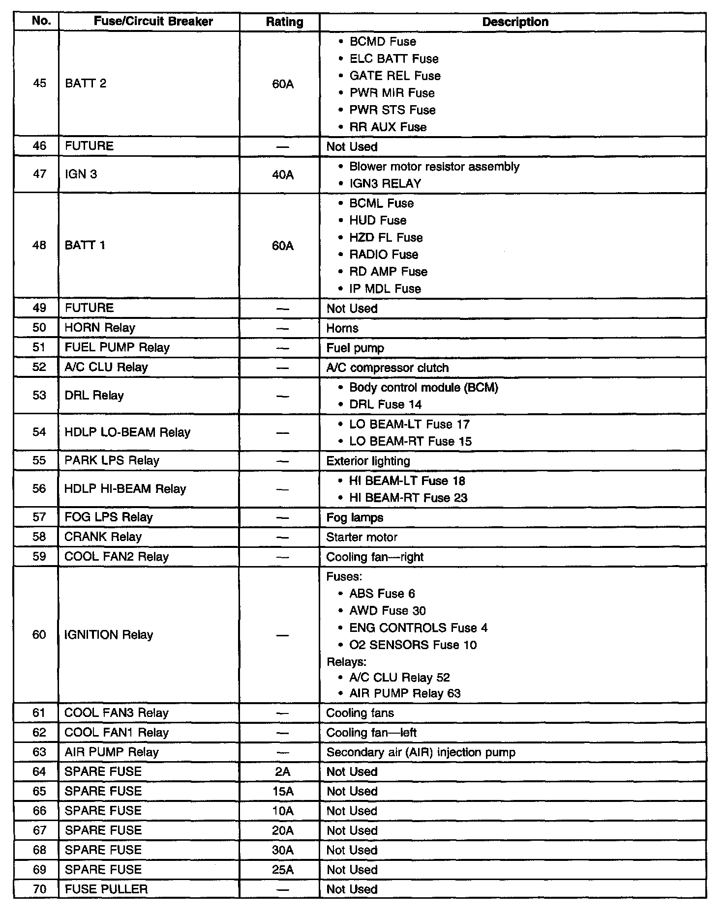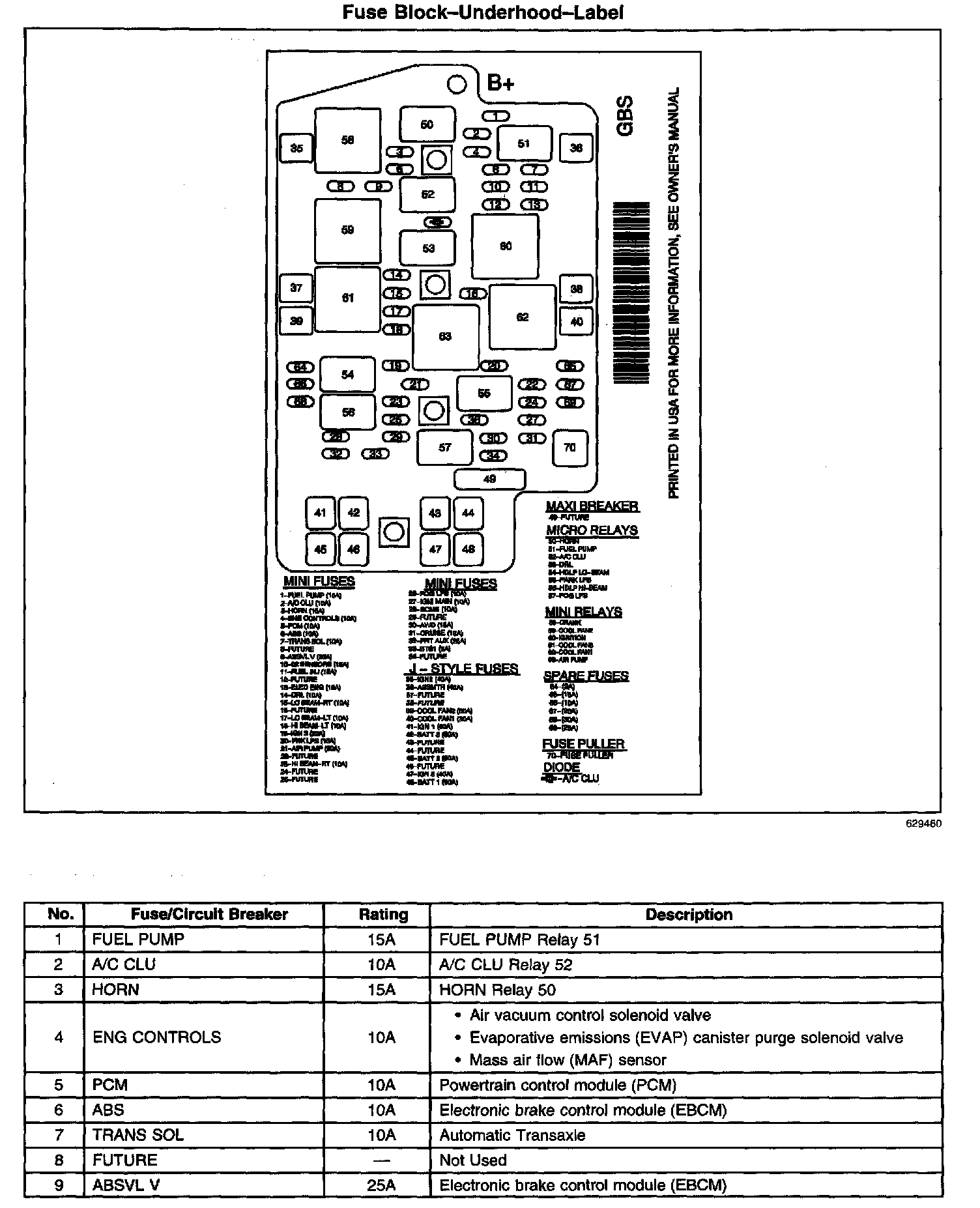 Fuse Block-Underhood-Label (Part 3 Of 3):