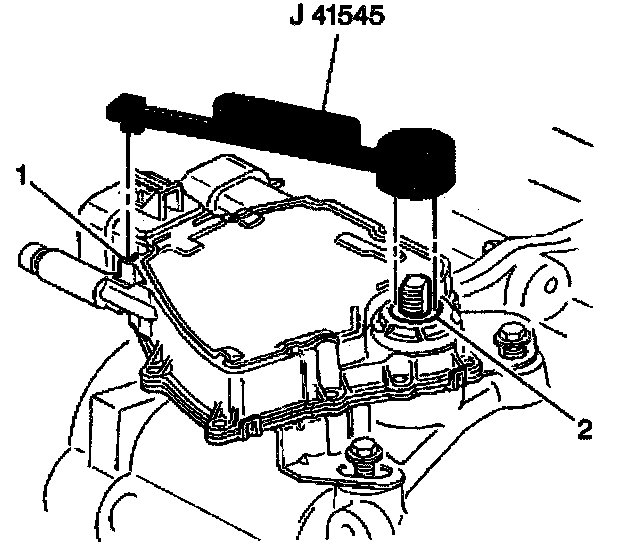 6. Install the J 41545 on locations (1) and (2) in order to align the PNP switch.
