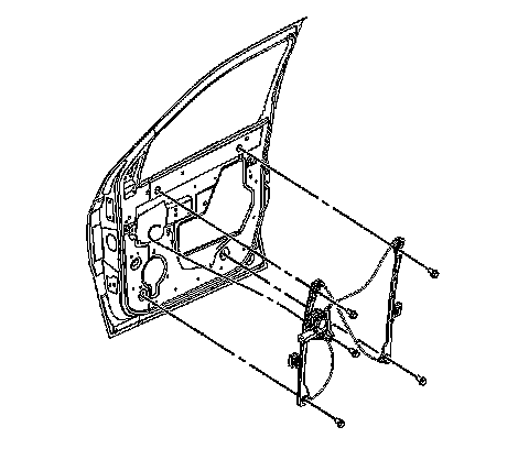 6. Connect the window to the regulator carrier plate. Refer to Front Side Door Window Replacement (Service and Repair).
