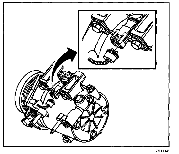 4. Release the drive belt tensioner. Remove the drive belt from the compressor pulley.