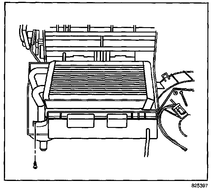 IMPORTANT: The lower HVAC module assembly retaining screw is located under the heater core.