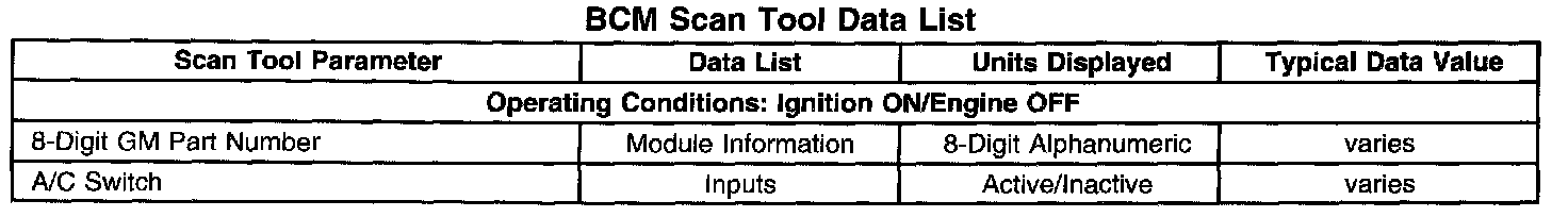 BCM Scan Tool Data List: