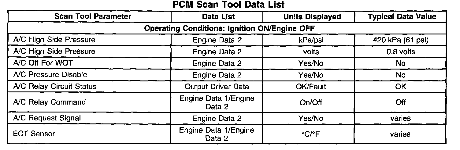 PCM Scan Tool Data List: