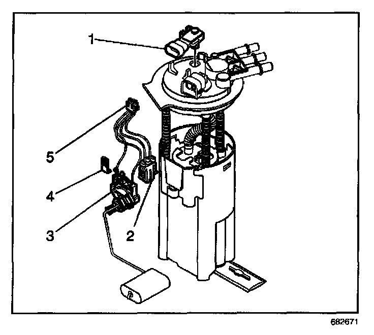 3. Remove the fuel tank pressure sensor (1) from the modular fuel sender.