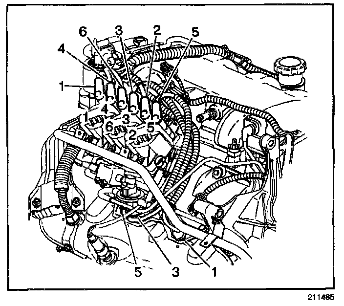 5. Remove the spark plug wires (1, 3, and 5) from the rear bank spark plugs.