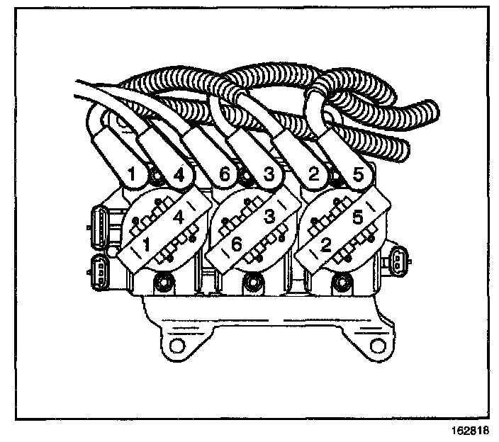 6. Install the spark plug wires (2, 4, and 6) to the front bank spark plugs.