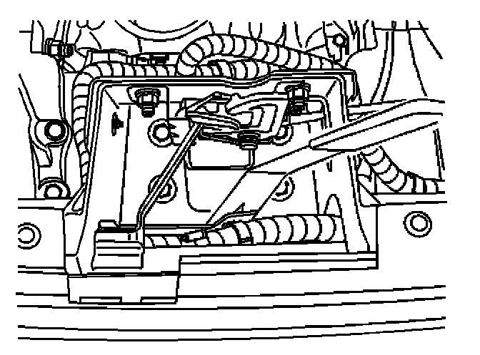 2. Install the wiring harness push-in retainer which secures the ambient air temperature sensor to the hood latch support.