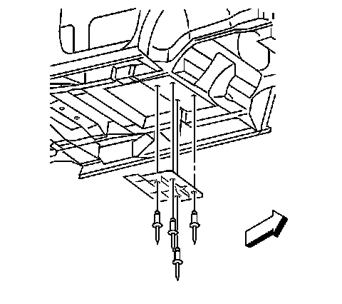 2. Install the catalytic converter heat shield to the vehicle with new rivets.