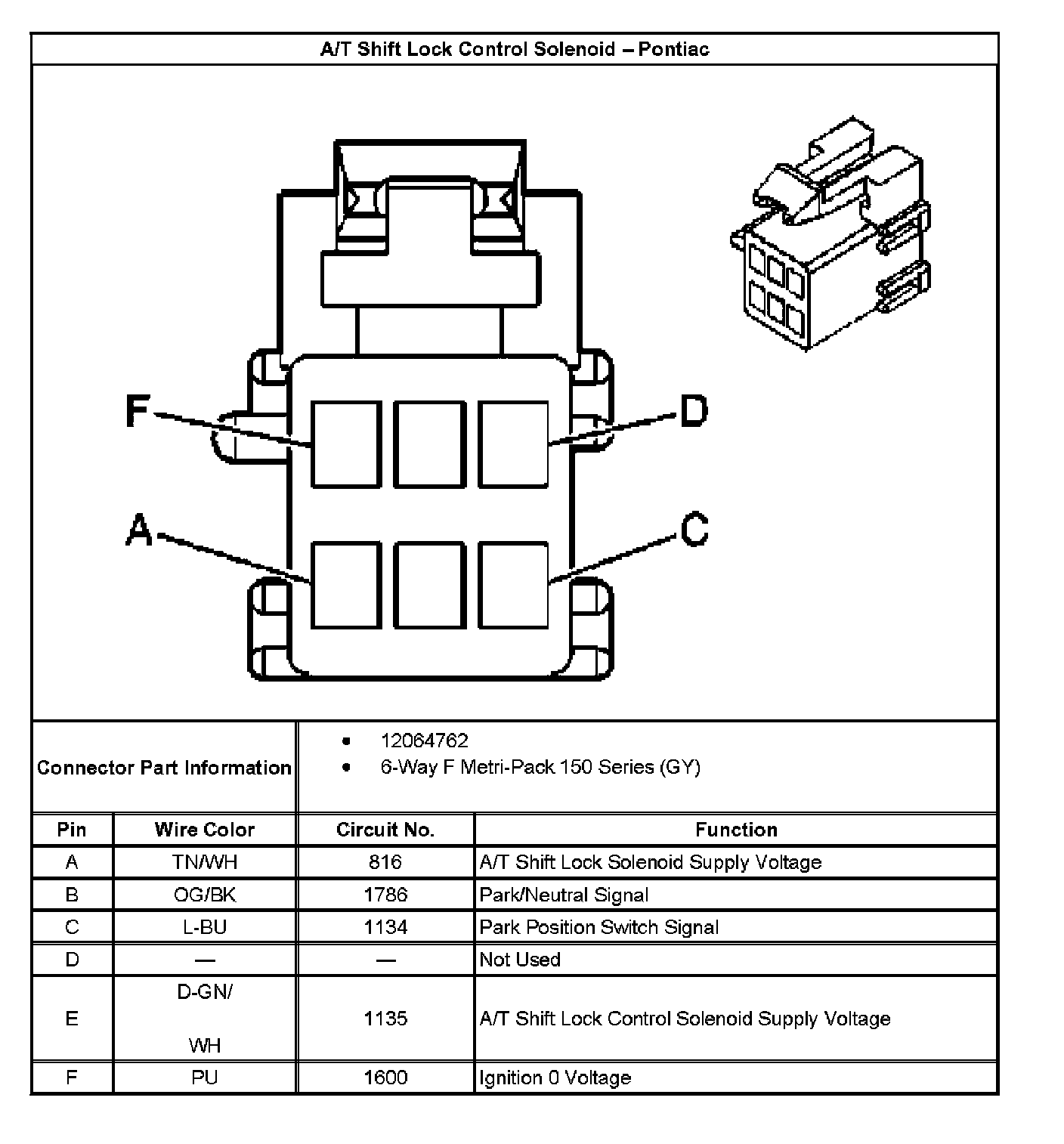 Automatic Transmission Shift Lock Control Solenoid - Pontiac: