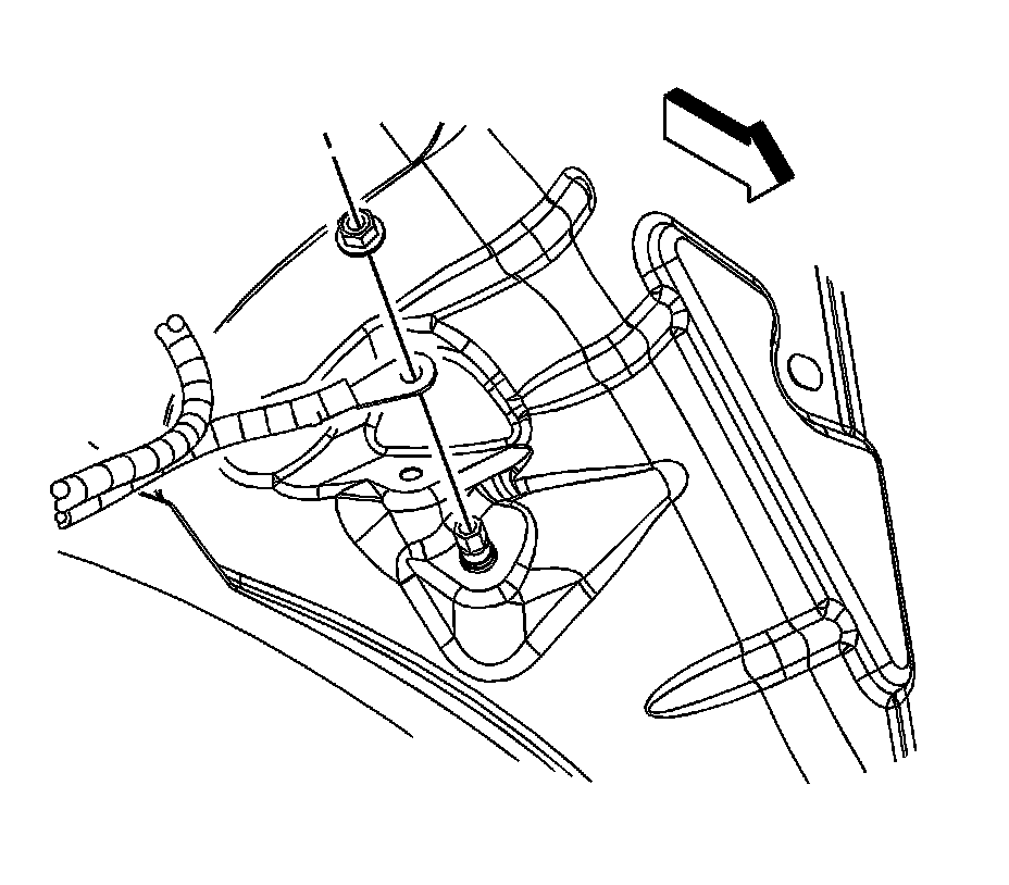 5. Install the negative battery cable ground terminal nut to the wheelhouse stud.