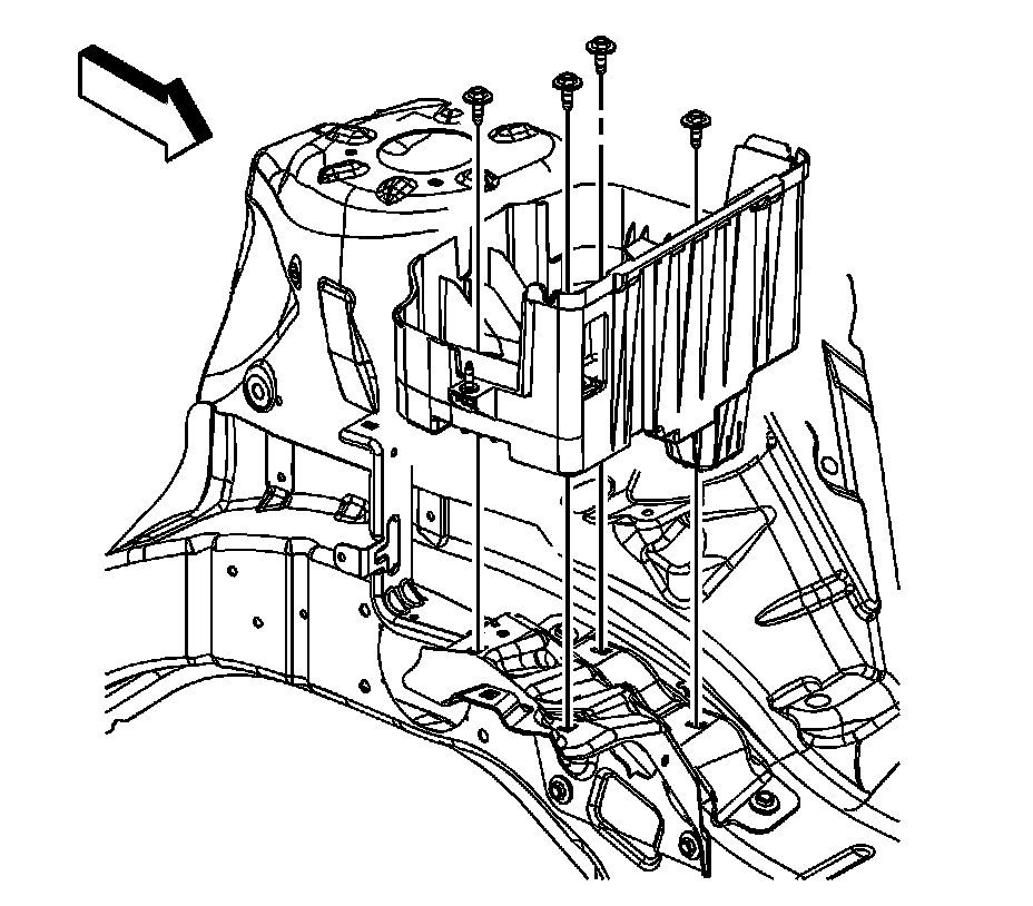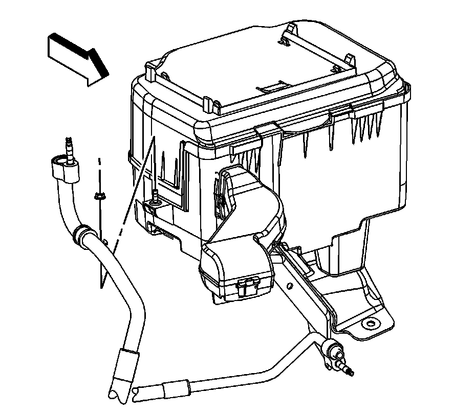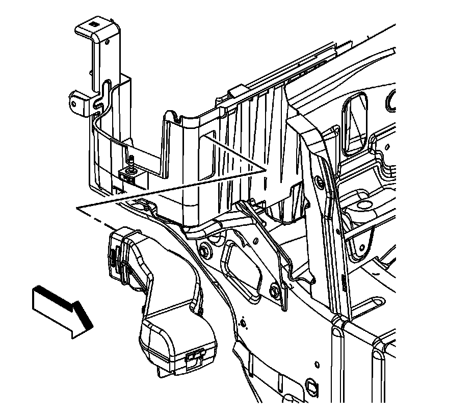 Important: Fully insert the duct into the hole on the battery tray past the second molded in ridge, stopping at the flange.