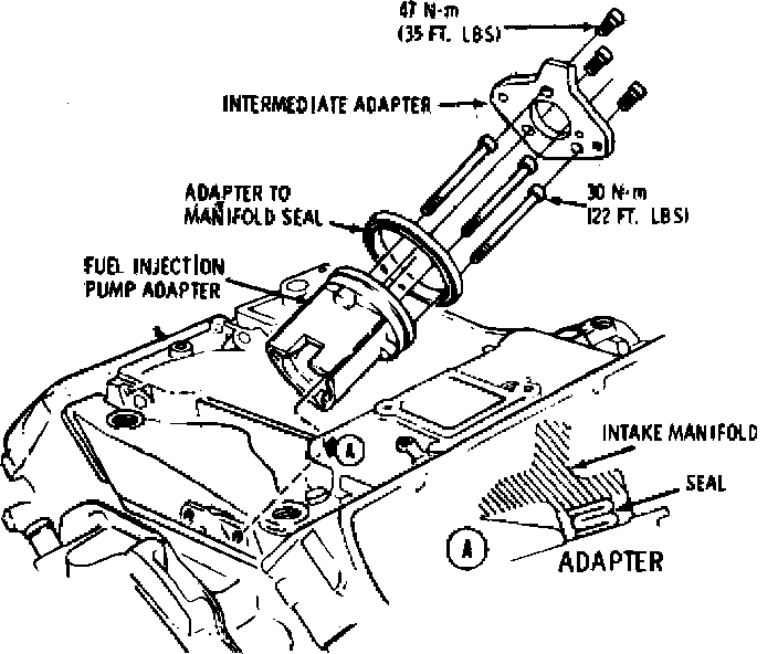 Fig. 12 Removal & installation of intermediate adapter, pump adapter & seal: