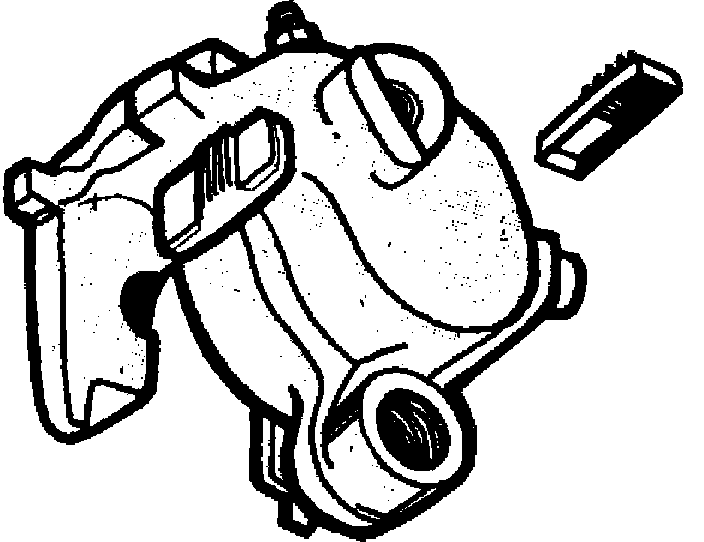 8. With caliper clamped in a vise, position clips over cushions and squeeze mounting bracket over clips, aligning the bolt hole. Move bracket against retainer boss on caliper and install retainer bolt. Torque bolt to 28 ft. lbs., (38 Nm). Considerable force may be required to squeeze bracket over cushions and clips on caliper. Start open end of bracket over ends of clips near the boot and move the bracket toward the closed end of caliper.