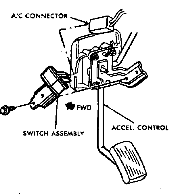 Vehicles equipped with automatic transmission and air conditioning utilize a full throttle A/C compressor cut-out switch, Fig. 6, which de-energizes the A/C compressor clutch during full throttle acceleration. A pressure sensitive switch, located in the transmission, overrides the cut-out switch when the transmission is in third gear during full throttle acceleration.