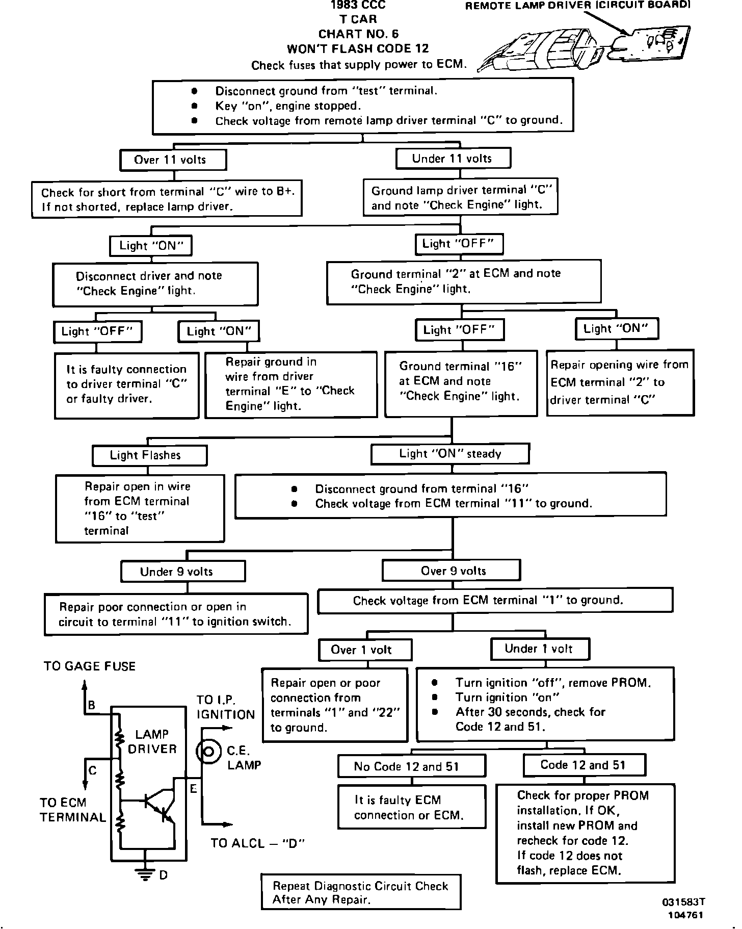 1983 CCC T CAR CHART NO. 6 WON'T FLASH CODE 12: