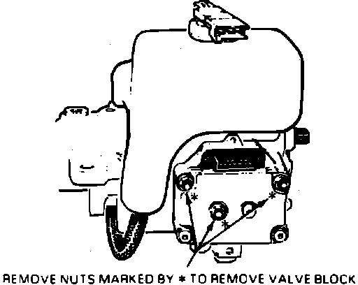 3. Remove hydraulic unit, then the three nuts and washers from valve block as shown in Fig. 96.