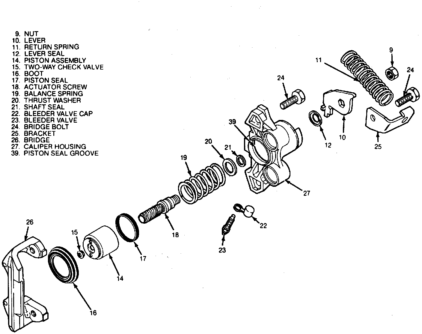 4. Install brake line fitting (36) onto caliper using new copper washer , if removed. Torque to 44 Nm (32 lb. ft.).
