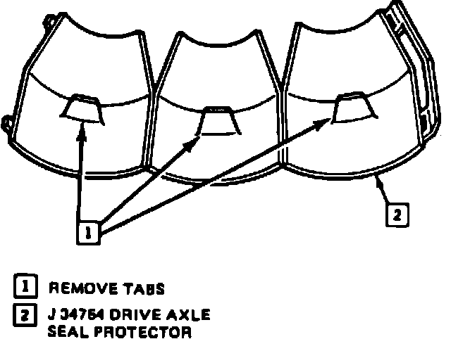 9. Swing knuckle downward and away from drive axle shaft. Drive axle seal protector J 34754 Fig. 10 should be modified and installed on drive axle prior to performing service procedures. Failure to observe this could result in seal damage and possible joint failure.