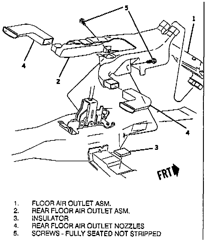 10. Screws and floor outlet, turning clockwise and to the right to release from rear floor air outlet.