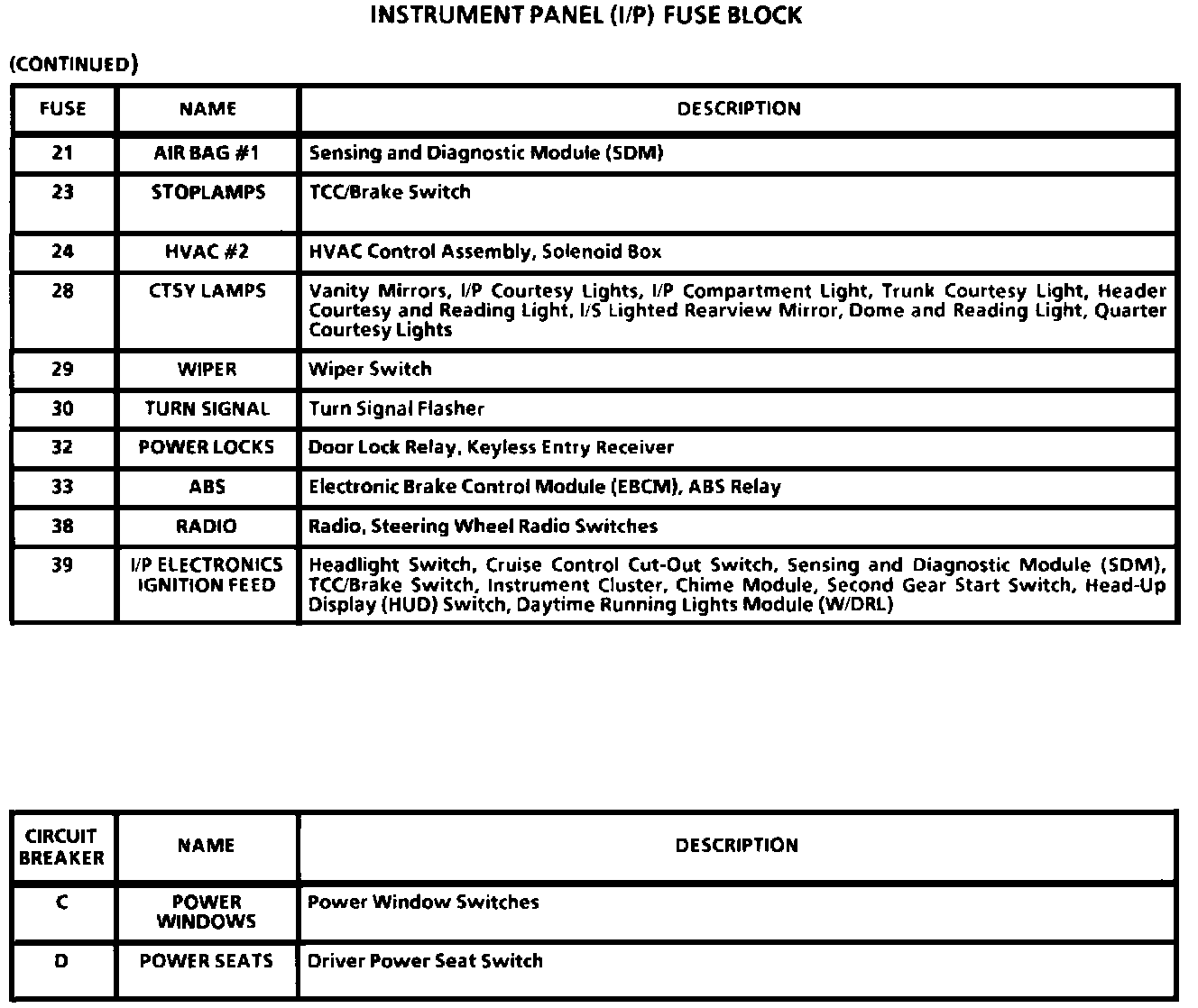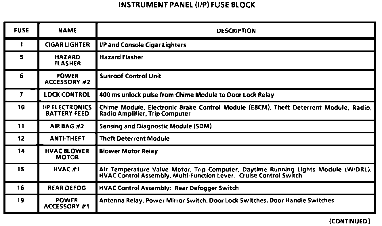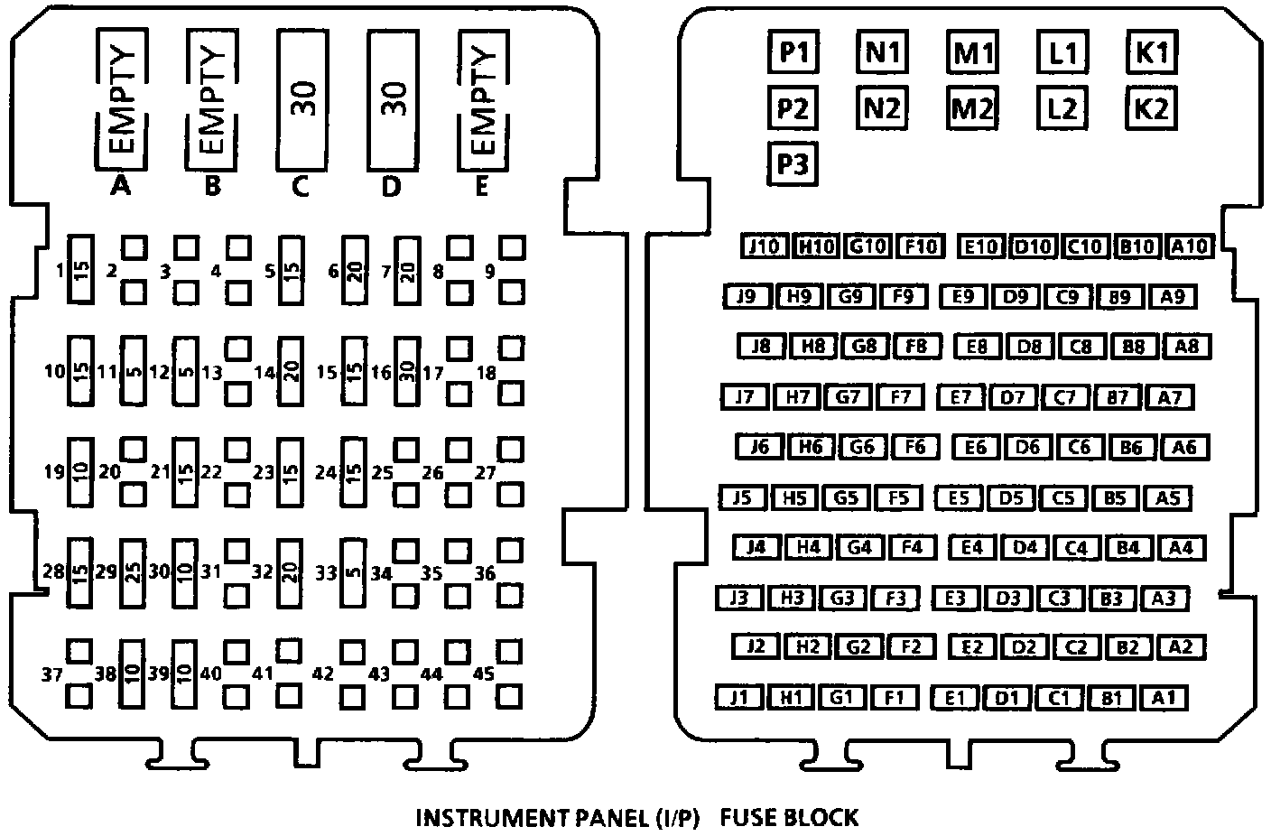 Instrument Panel (I/P) Fuse Block:
