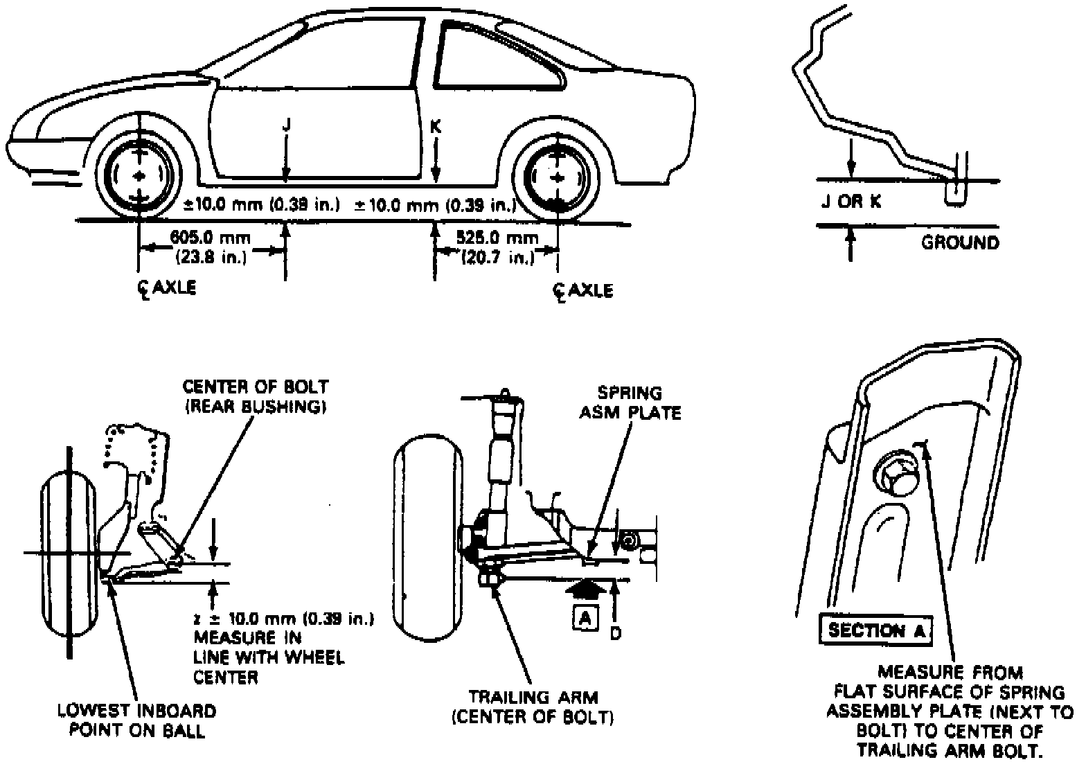 7. Measure from level floor to rocker panel at "Z" and "J" positions.