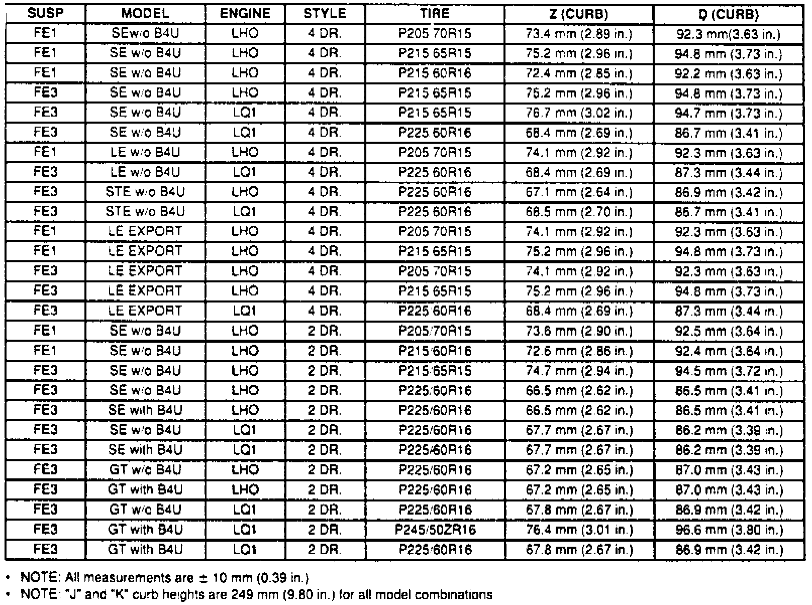 Fig. 7 Ride Height Specification Chart: