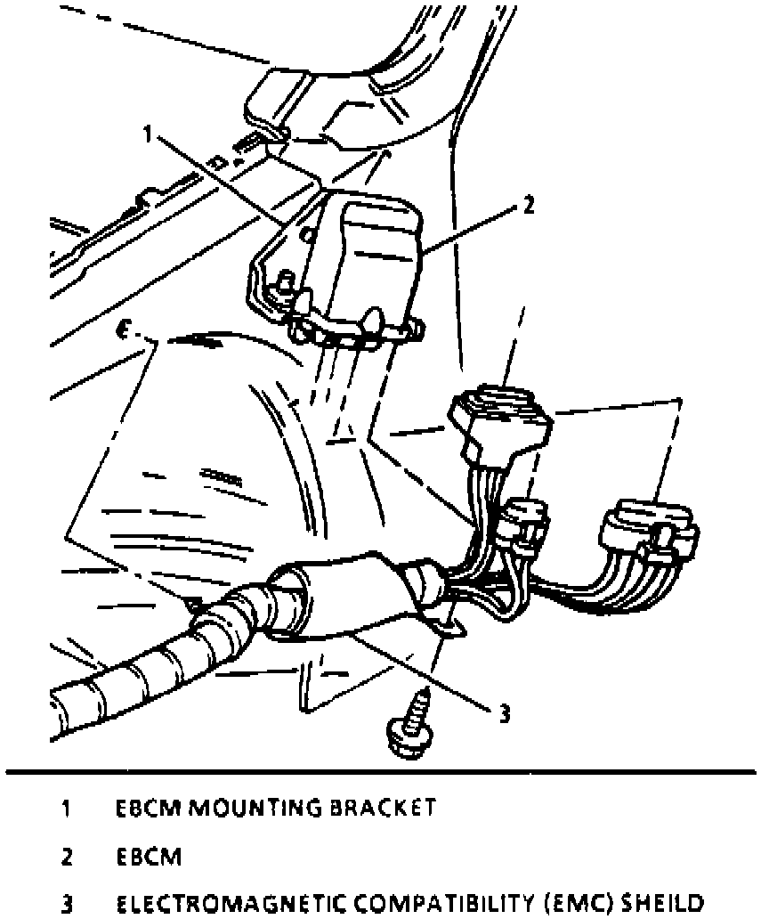 4. Slide shield back on harness, then remove EBCM retaining screws.