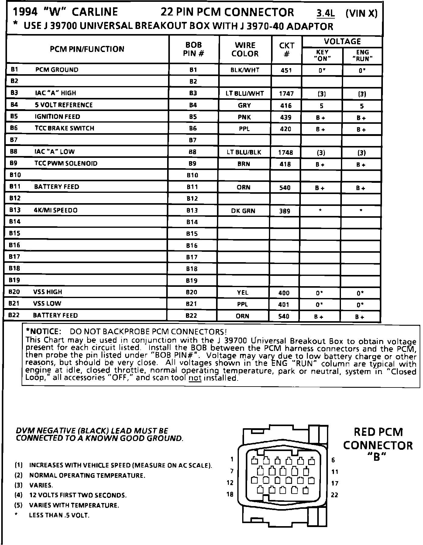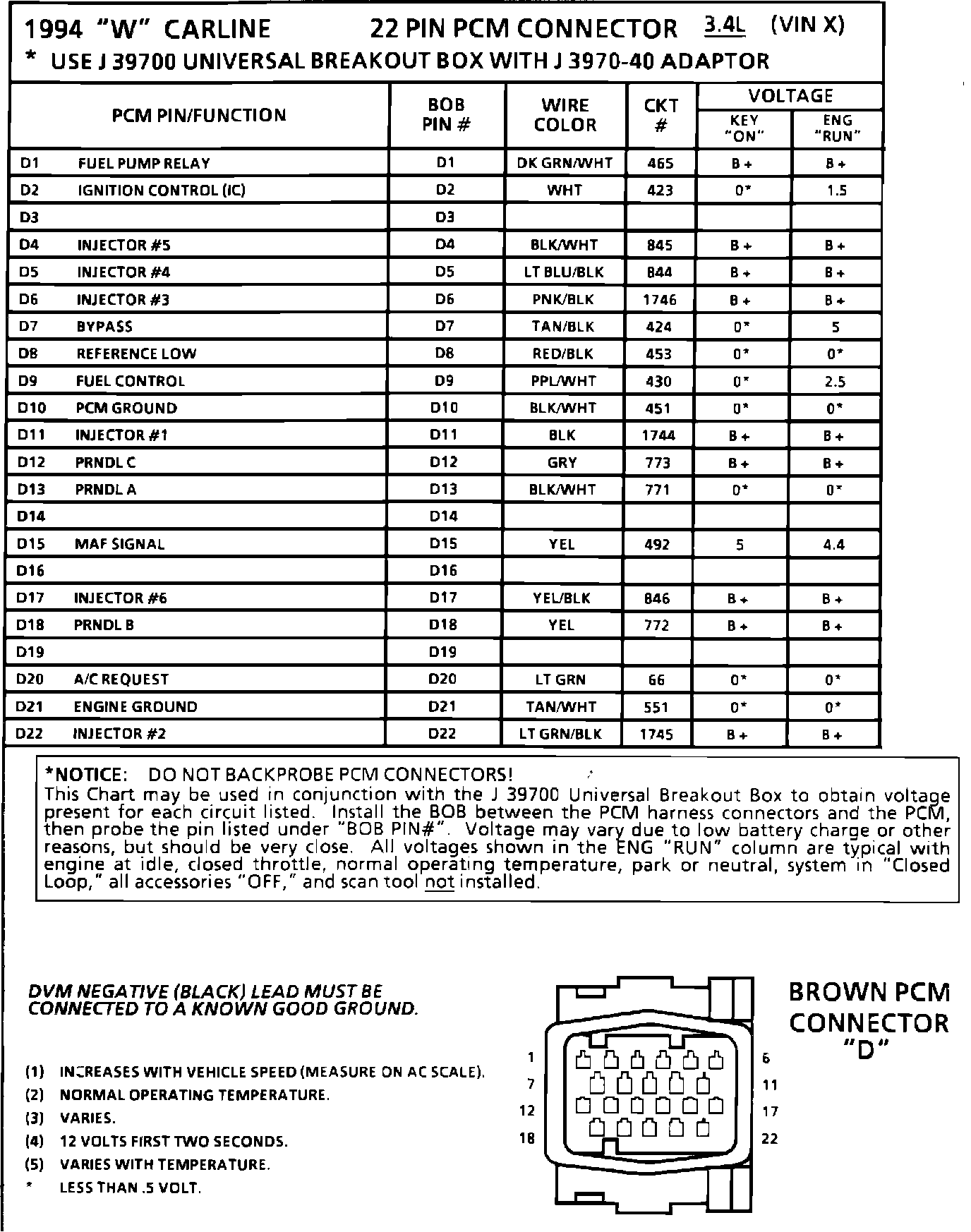 PCM Connector ID And Terminal/Voltage Reference Chart (3 Of 4):