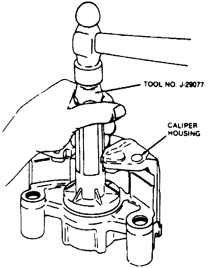 7. Inspect caliper housing and seal groove for corrosion, nicks, scoring and excessive wear, and use crocus cloth to polish away corrosion from housing bore. Replace caliper housing if corrosion in and around seal groove will not clean up with crocus cloth.