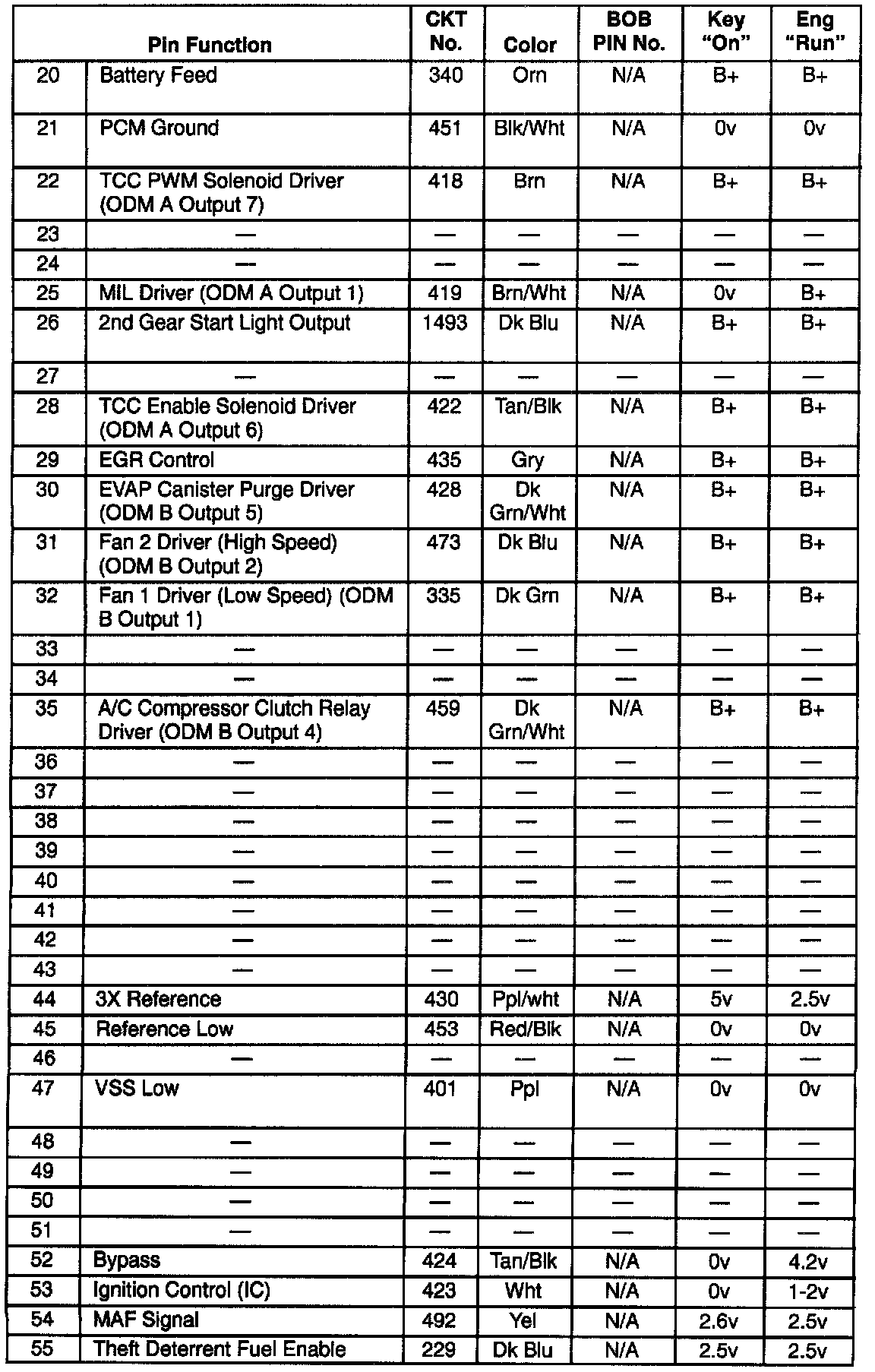 PCM 80-Way Blue Connector (J1) Details (Part 3 Of 3):