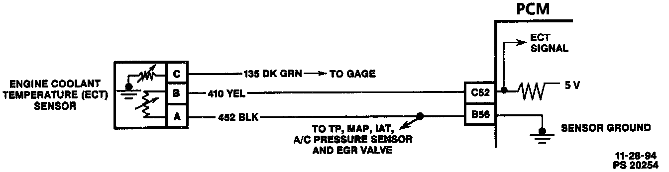 Engine Coolant Temperature (ECT) Sensor Circuit: