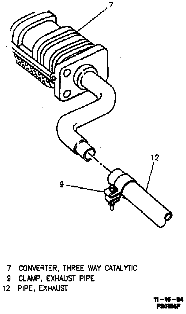1. 3-way catalytic converter (7) to catalytic converter hanger (30).