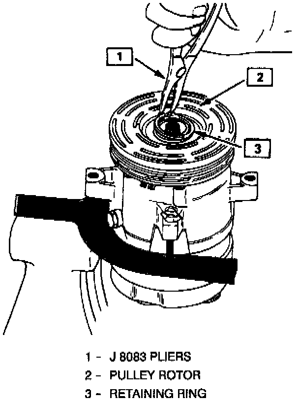 Removing Pulley Rotor & Bearing Assembly Retaining Ring: