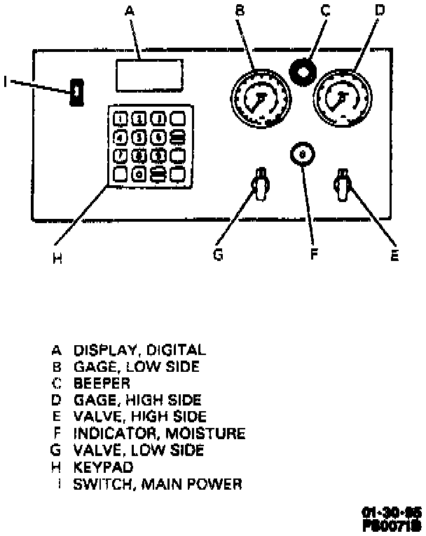 ^ Digital Display - shows the time programmed for vacuum and the weight of refrigerant programmed for recharging.