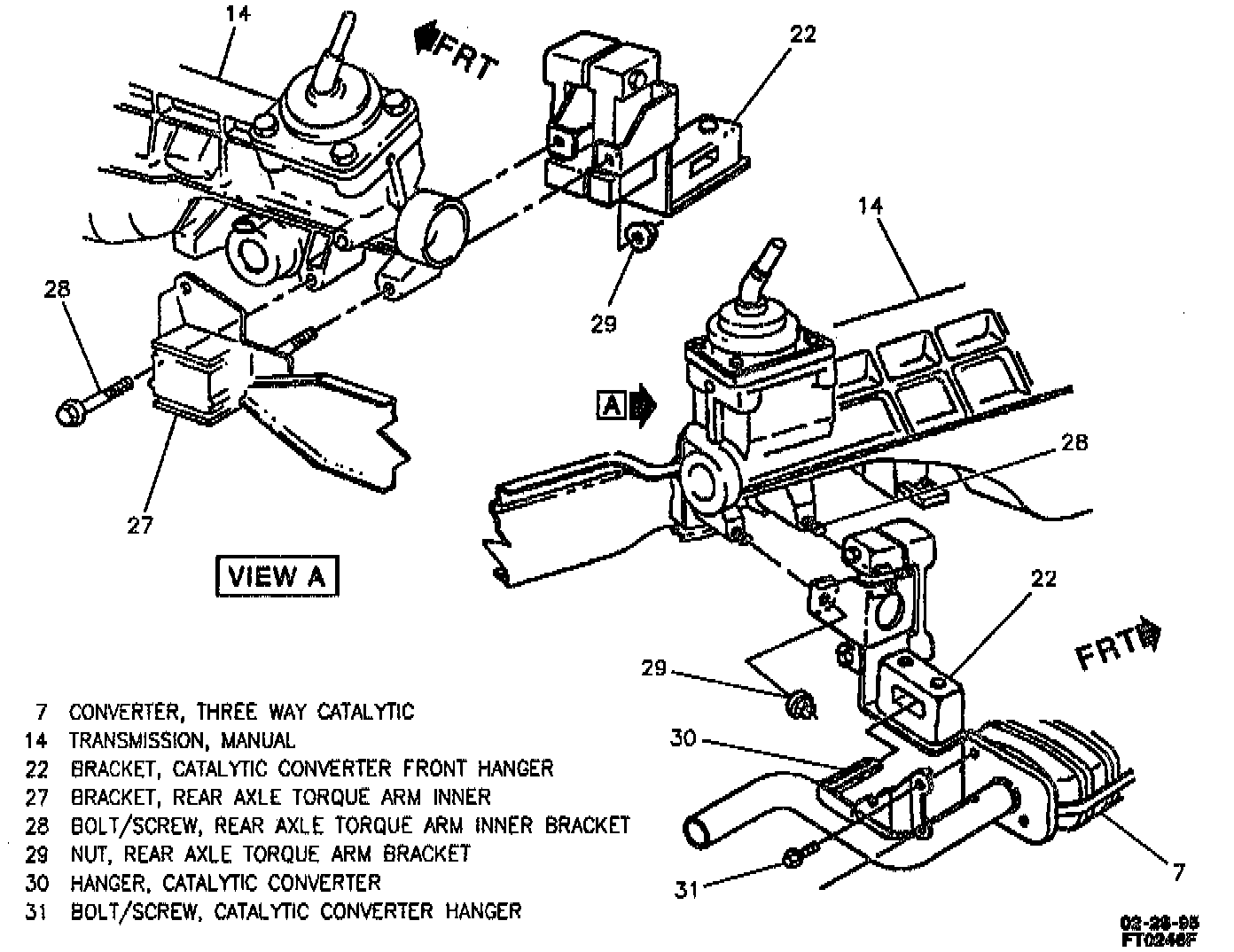 1. Catalytic converter (7) to catalytic converter hanger (30).
