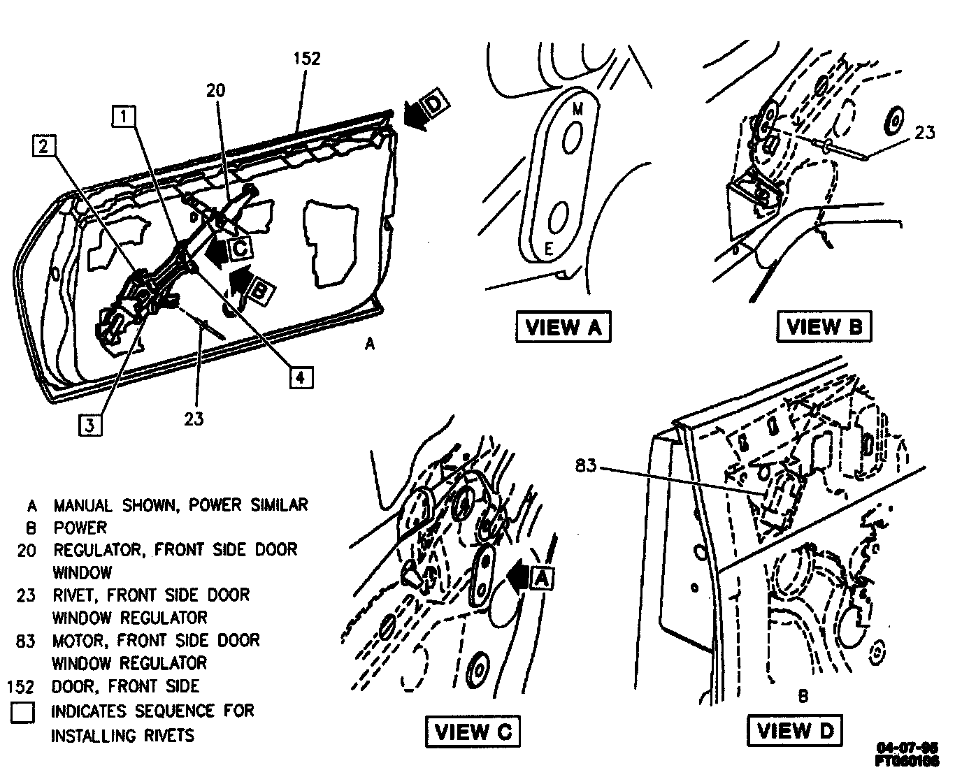 Caution: Make sure to disconnect the power window switch when working Inside the driver's door. When operated, the Express Down feature allows the door window to drop very quickly which could cause personal injury.