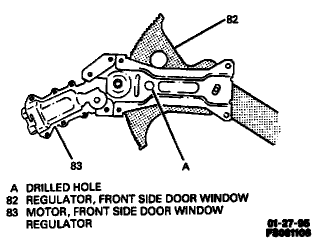 Caution: If electric motor removal from the regulator Is required, the sector gear must be locked in position. The regulator lift arm is under tension from the counterbalance spring and could cause personal Injury if the sector gear Is not locked in position.