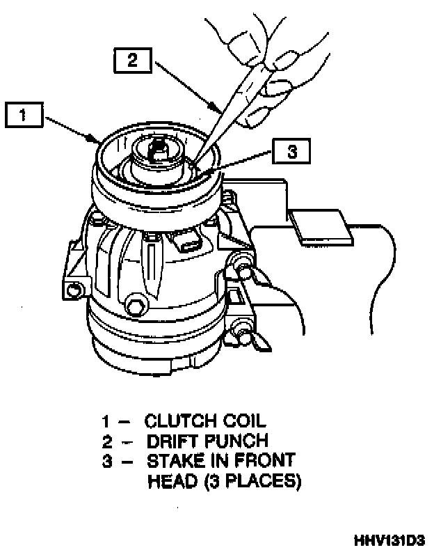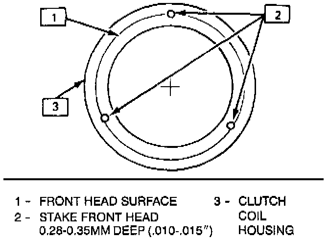 5. When coil is fully seated on the front head, use a 1/8" diameter drift punch and stake the front head at three (3) places 120° apart, to ensure clutch coil remaining in position.